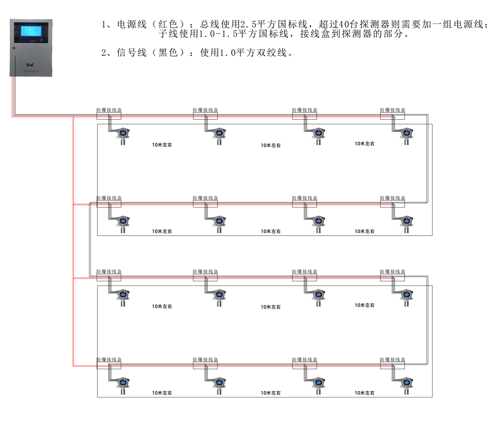 3.1、本系統由1臺氣體報警控制器、1-250臺探測器組成(含外控器)。需要的時